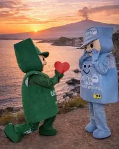 De to mødte hinanden på et togskifte i Hamborg, begge på vej mod en solrig ferie i Sicilien. Skæbnen ville, at de endte sammen på stranden i Cefalù, hvor Hr. Tog – under en gylden solnedgang – gik på knæ og friede til Fru Ski. 💍🤩’