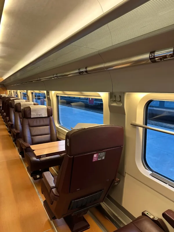 Renfe-togene tilbyder flere komfortniveauer, afhængigt af togtype og rute. Højhastighedstogene AVE har både Turista (2. klasse) og Preferente (1. klasse). Turista byder på komfortable, polstrede sæder, gratis wifi, strømudtag og god plads til bagage. Preferente har bredere sæder, ekstra benplads, roligere omgivelser, adgang til lounge på udvalgte stationer og servering af måltider på visse afgange. På mange langdistance- og højhastighedstog findes café- eller restaurantvogn. Toget er handicapvenligt, og der er plads til cykler og barnevogne på flere afgange (reservation anbefales).