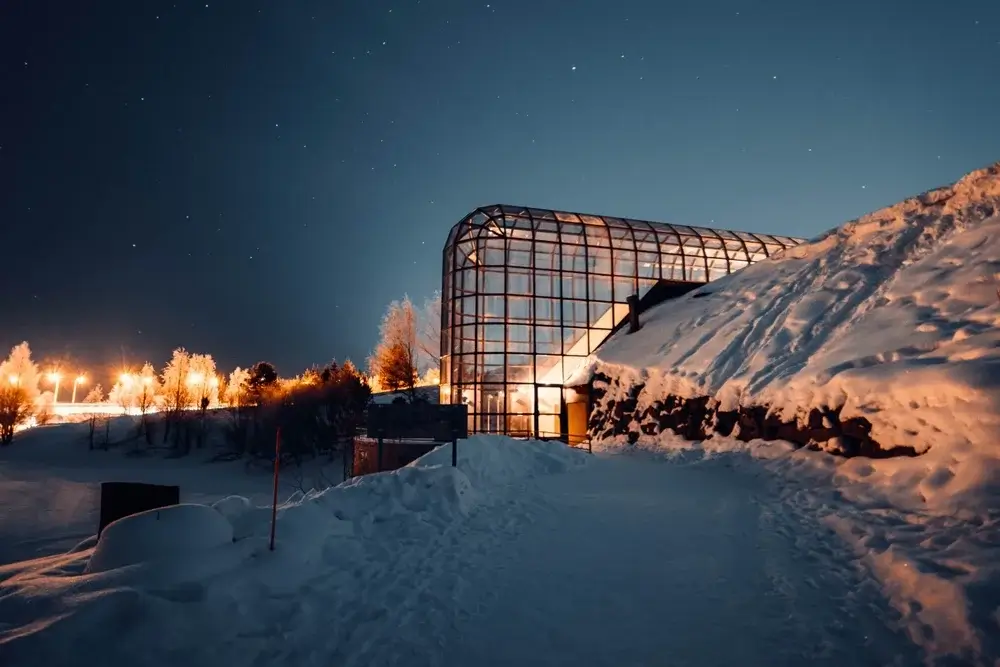 Inkl. tog, natfærge retur, hotel med morgenmad og 1 nat i Glass Igloo/Is-værelse.